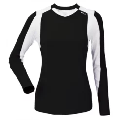 DUC Roll Women’s Longsleeve Tennis Shirt (Black/White) [SALE] (Model #WV1303-BK-SALE)