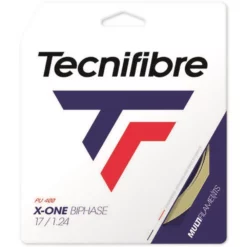 Tecnifibre X-One Biphase String 17g. A premium multifilament string, X-One BiPhase delivers superb comfort, feel and a crisp response. A good choice for players seeking an arm friendly string without sacrificing power. Provides good tension maintenance too. About as gut-like as synthetics get. Offers a livelier feel, but with slightly less durability compared to the 16 gauge version and is a great choice to liven up a tight string pattern.